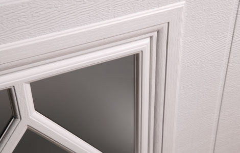 Viste a la puerta del garaje para complementar la arquitectura de su casa con una selección de más de 35 diseños de inserción ventana y vidrio.